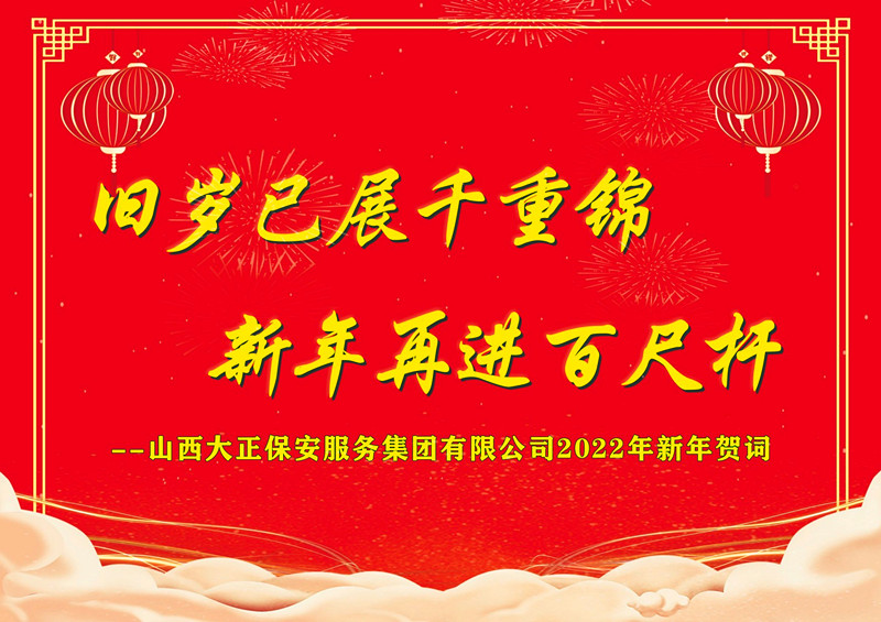 歲序常易,新元肇始。值此萬象更新的美好時刻,山西大正保安服務(wù)集團(tuán)有限公司黨委、董事會及經(jīng)理班子,向集團(tuán)公司全體黨員、干部、職工及背后默默支持大家的家屬朋友們,致以新年的祝福和節(jié)日的問候!向長期以來關(guān)心、支持大正保安集團(tuán)建設(shè)發(fā)展的領(lǐng)導(dǎo)、同仁、客戶和朋友們,致以崇高的敬意和衷心的感謝!