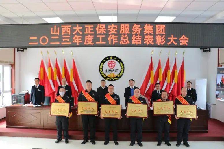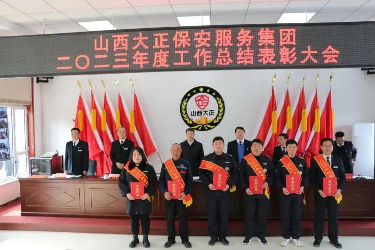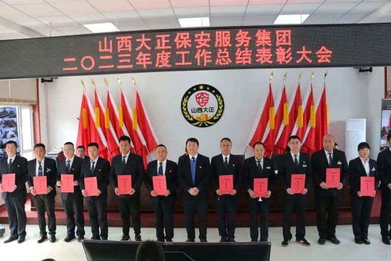 副總經(jīng)理張瑞東宣讀《山西大正保安服務(wù)集團(tuán)有限公司2023年度“雙先”評(píng)比表彰決定》,上級(jí)來賓和集團(tuán)公司領(lǐng)導(dǎo)為受到表彰的先進(jìn)集體、先進(jìn)個(gè)人代表頒獎(jiǎng)。
