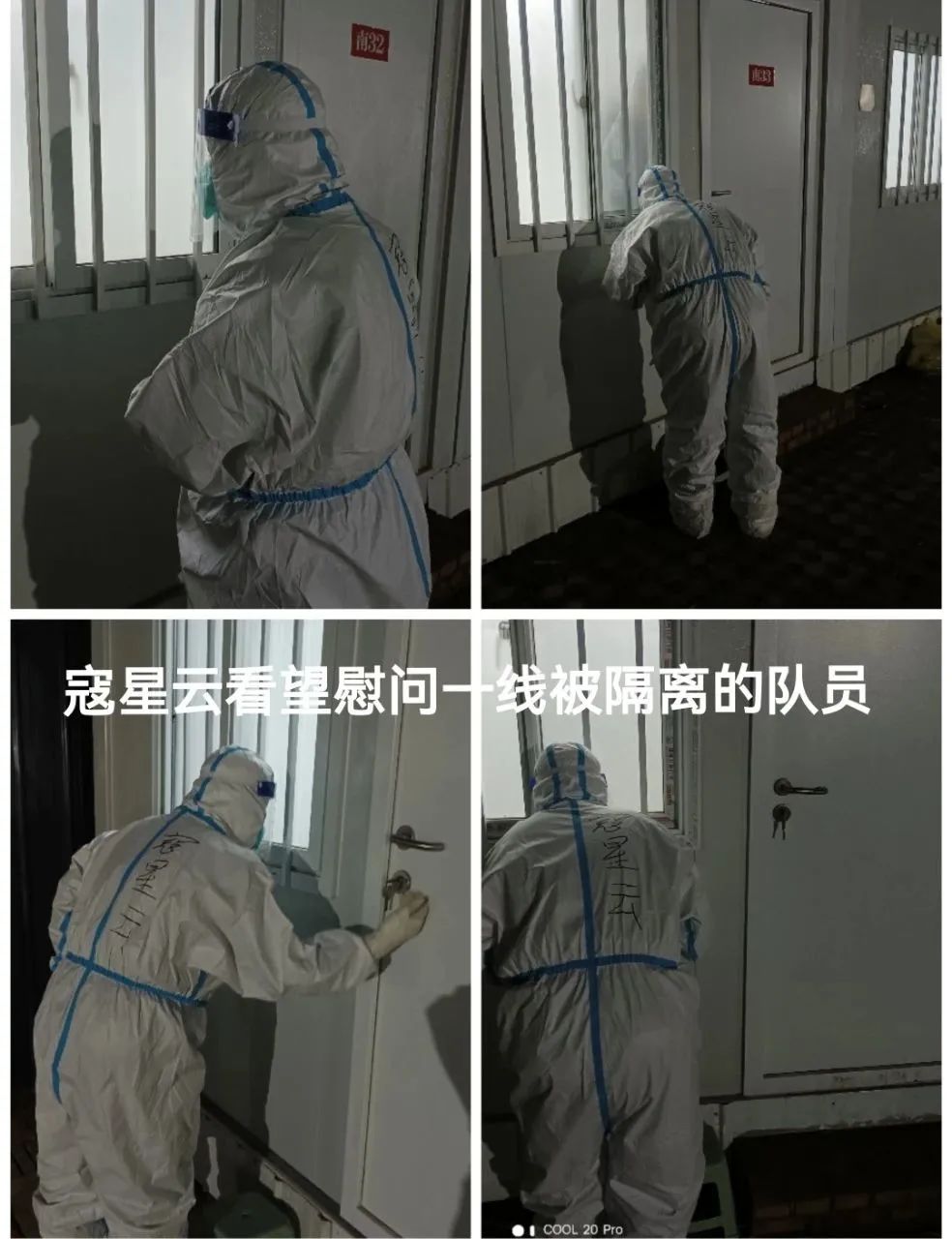 關(guān)心溫暖人心,關(guān)懷凝聚力量,領(lǐng)導(dǎo)的關(guān)心是對(duì)一線員工的最大安慰和精神鼓舞,組織的關(guān)懷是凝聚力量、激發(fā)斗志的不竭動(dòng)力,不論是出征前的動(dòng)員講話,還是送別隔離區(qū)一線隊(duì)員的鼓勵(lì)和問(wèn)候,以及在微信群里的囑咐鼓勁,寇星云同志始終把大家的個(gè)人安危放在第一位,時(shí)刻叮囑隊(duì)員們必須做好自我防護(hù),確保自身安全,堅(jiān)決杜絕內(nèi)部感染傳播,只有自己安全才能更好地服務(wù)病患、服務(wù)好隔離人員,才能高質(zhì)量、高標(biāo)準(zhǔn)完成我們的使命任務(wù),才是對(duì)家人、對(duì)社會(huì)的真正負(fù)責(zé)。他鼓勵(lì)大家發(fā)揮守押隊(duì)伍能征善戰(zhàn)、沖鋒陷陣、挑戰(zhàn)自我,苦干實(shí)干的優(yōu)良作風(fēng),堅(jiān)定抗疫有我、戰(zhàn)疫必勝、疫情不散、堅(jiān)守陣地的信心和決心。對(duì)在工作中因勞累過(guò)度、身體受傷、出現(xiàn)不適的隊(duì)員更是關(guān)心備至、體貼入微,親自看望受傷隊(duì)員田振華,關(guān)心照顧因低血糖暈倒在一線的隊(duì)員吳彩霞,慰問(wèn)在隔離宿舍和方艙隔離區(qū)因勞累過(guò)度出現(xiàn)身體不適的13名隊(duì)員,給他們送去生活用品,并和他們進(jìn)行親切地交談,帶去組織的關(guān)懷,領(lǐng)導(dǎo)的關(guān)心,凝聚人心,鼓舞士氣。