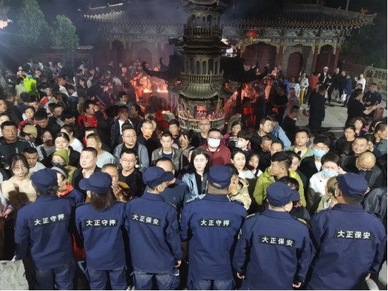 執(zhí)勤期間,全體執(zhí)勤隊員堅守崗位,克服種種困難,連續(xù)工作24小時,充分發(fā)揚不怕苦、不怕累的奉獻精神,保證了廟會秩序井然。執(zhí)勤隊員任勞任怨,恪盡職守,文明服務,幫扶老幼,得到了廟會主辦方和廣大群眾的贊譽,充分展示了山西大正保安服務集團有限公司優(yōu)良作風和良好形象。